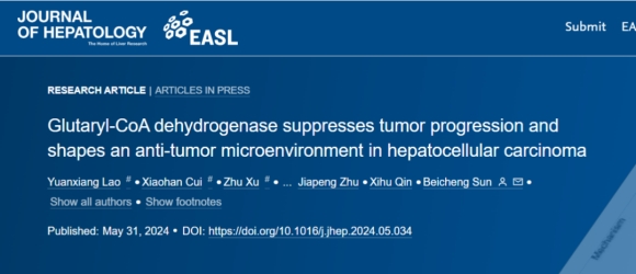 2024年6月6日,安徽医科大学第一附属医院孙倍成团队在肝脏病顶级期刊Journal of hepatology(IF:26)在线发表了题为“Glutaryl-CoA dehydrogenase suppresses tumor progression and shapes an anti-tumor microenvironment in hepatocellular carcinoma”的最新研究成果,该研究揭示了戊二酰辅酶A脱氢酶GCDH可通过巴豆酰化抑制磷酸戊糖途径和糖酵解来抑制肝细胞肝癌(HCC)进展,进而导致HCC细胞衰老并形成抗肿瘤免疫微环境[1]。